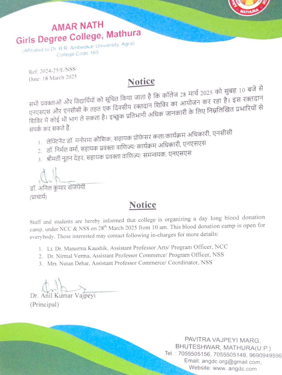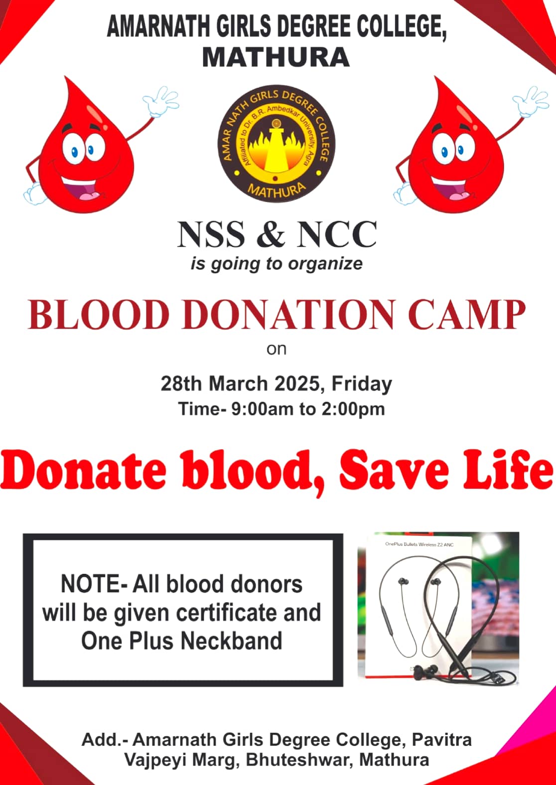 28th MARCH 2025 Organized by NCC & NSS unit of college